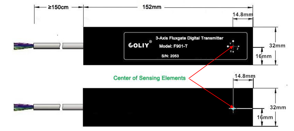注:三维磁通门数字变送器F901-T的电缆长度默认是1.5m,电缆可根据用户要求订制。